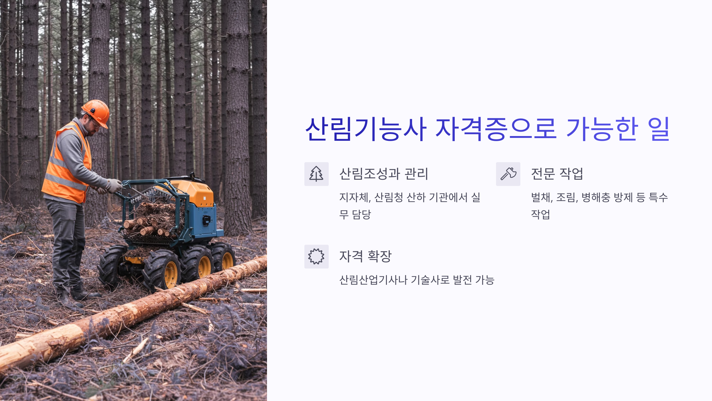 또한, 벌채, 조림, 병해충 방제와 같은 특수한 작업도 맡을 수 있어서 단순 노동 이상의 전문가 영역으로 성장할 수 있어요. 특히 산림기능사 자격증은 향후 산림산업기사나 기술사로의 확장도 가능한 기본 자격입니다.
